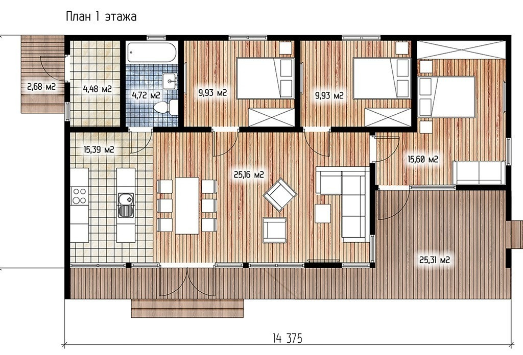 Размеры дома: 14.38 x 7.50