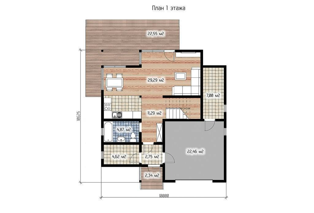 Размеры дома: 10.00 x 10.63