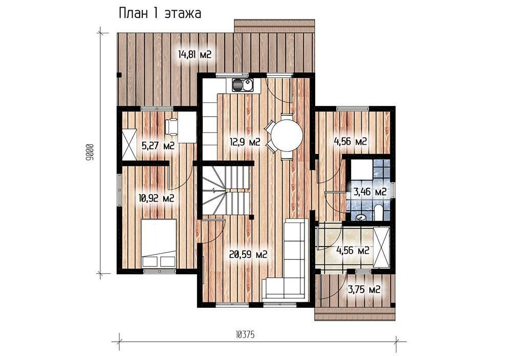 Размеры дома: 8.75 x 10.34