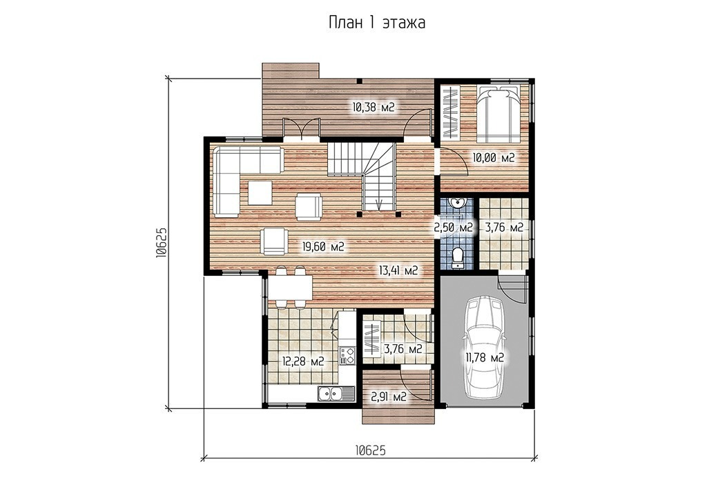 Размеры дома: 10.63 x 10.63