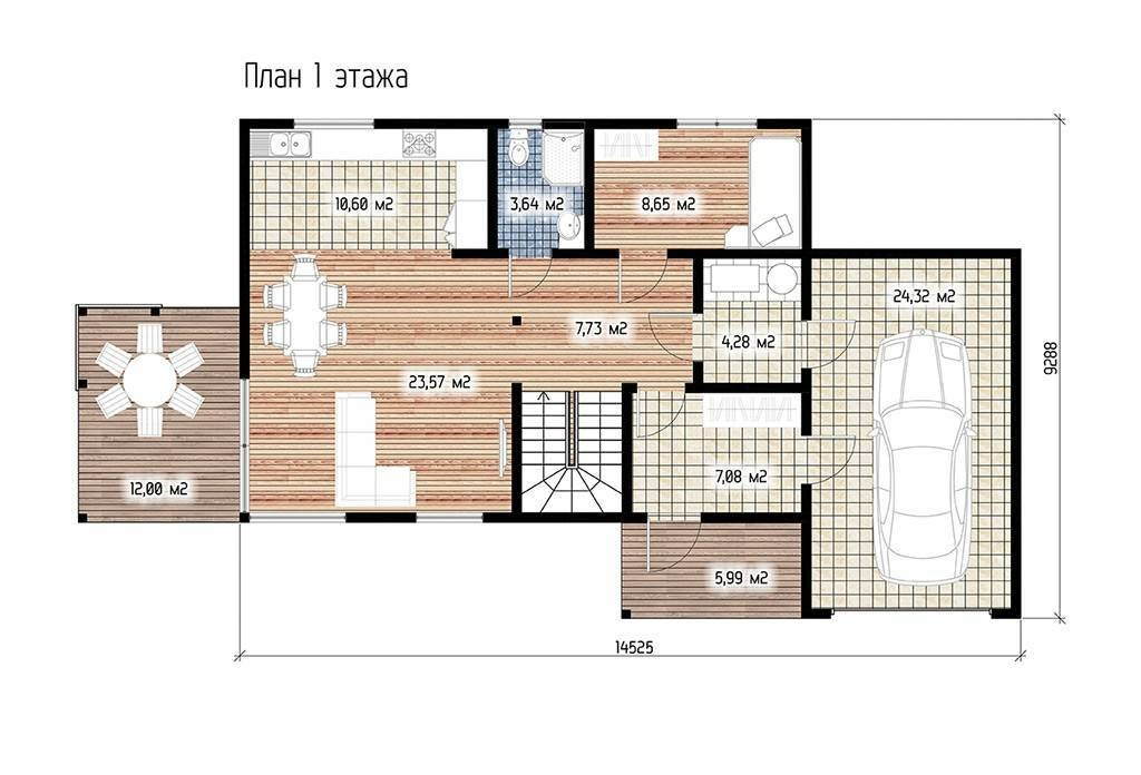 Размеры дома: 9.29 x 14.53